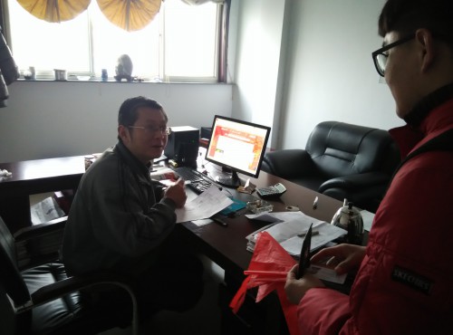 图为淄博市盐业局工作人员为我们指出活动中的不足之处
