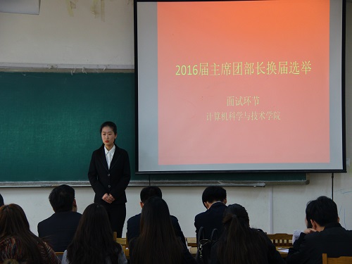 3月19日下午,williamhill英国中文在9号楼210教室举行2016届学生会主席团部长换届面试选举与无领导小组讨论。此次活动由我院团总支书记刘灿德主持,2015届学生会主席团以及各部门部长担任评委。