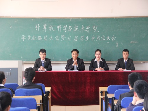 会议伊始,15届学生会主席孔祥杉简要地做了过去一年的述职报告。报告内容包括过去一年的工作的整体回顾,学院在各类排名比赛中获得的荣誉等,同时她也表达了对下届学生会工作的支持与美好祝愿。随后,刘灿德代表学院宣读了16届学生会干部成员名单。16届学生会主席路广智向参加会议的成员作了任职报告,内容包括对未来一年工作的规划及学生会的工作任务和发展方向。最后,由刘灿德作总结发言,他代表学院对学生会的认真工作表示感谢,并且对学生会今后的工作提出了几点要求,包括责任意识、团队意识、纪律意识和文明意识等。内容深入浅出,通俗易懂,在座成员细心听讲,认真笔记。此次会议在热烈的掌声中顺利结束。
