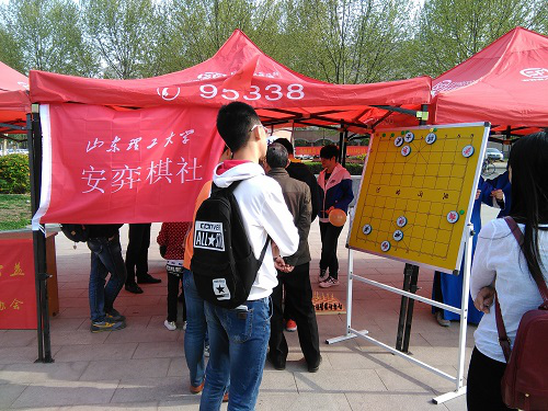 4月10日下午,在我校60周年校庆之际,我院安弈棋社在稷下湖畔开展宣传活动。安弈棋社社长许洁及众社员参与了此次宣传活动。此次宣传活动旨在提高安弈棋社在全校范围内的影响力,形成安弈棋社的品牌力量,为今后安弈棋社活动的开展打下良好的基础。
