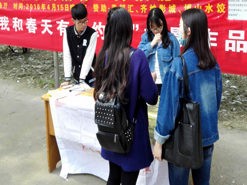 相信此次宣传活动的举行会吸引更多人加入到“我和春天有个约会”摄影作品征集大赛中,也相信会有更多人加入到“摄影”这一行列中来,锻炼同学们善于发现生活、表现自己的能力。