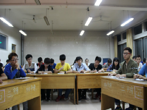 为保证比赛的公平,软件1502班以宿舍为单位,每个宿舍分别推选出一位辩手和一位评委,在互相监督的前提条件下进行了此次比赛。比赛伊始,正方一辩就当今社会爱国主义情怀仍旧存在于大家的思想中展开讨论,提出当国家的主权受到侵犯时,爱国人士会积极地发起五四运动性质的游行运动,而反方则表示随着时代的改变,人们的爱国情怀虽然不会减弱,但是对社会正能量的传递却有一定的缺失,对此正方又表示反方所见只是这个社会的一隅,社会还是有很多人充满正能量的,双方就此辩题展开了一系列的辩论,辩论队员们言辞流利,舌灿莲花,一时间场上气氛热烈不已,观众席掌声雷动,纷纷叫好。最后在评委们的商议下,反方最终获得胜利。