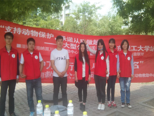 为了宣传保护动物、爱护动物的知识及理念,培养我校学生保护弱小动物的意识,也为了募集到更多的资金来更好的发展这个项目,为此,小水滴公益联盟于5月5日中午在三餐附近进行了签名宣传活动,活动负责人李兆杰携四名社团成员参加了此次活动。