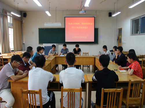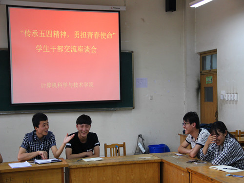 为弘扬五四精神,加强学生干部的思想道德修养,5月7日下午,williamhill英国中文在9号楼110室举行了以“传承五四精神,勇担历史使命”为主题的学生干部交流座谈会。此次座谈会由我院学生会主席路广智和副主席张桂文主持,2015级各班班长参加。