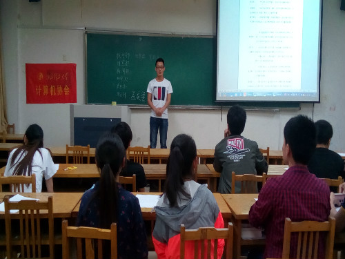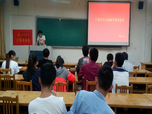 5 月7日晚上,2016 届计算机协会换届选举大会于9号教学楼 210 教室正式举行,会长李文华携众会员参加了此次活动。