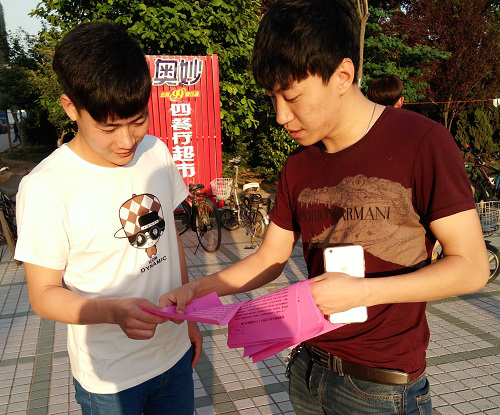 活动未开始,蔡甜甜及全体骨干早早地来到了餐厅门口,进行此次活动的准备工作。骨干们在蔡甜甜的安排下,各自有序地进行准备活动。在桌子、条幅都准备就绪后,骨干们开始分散在餐厅门口分发此次比赛的单页。每当有同学进入餐厅就餐或者就餐完毕后出来,骨干们就走上前去,向同学详细地介绍此次比赛并回答同学们对于此次比赛的疑问。一旦同学表现出对于参加此次比赛的兴趣,骨干们就会引导同学走到桌子前填写报名表。蔡甜甜还会更加详细地介绍此次比赛,包括赛前资料共享、赛前培训及相关的比赛内容。同时,蔡甜甜还会解答同学们针对此次比赛的疑惑。