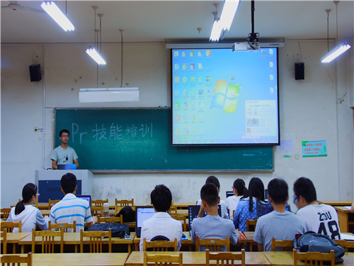 课程伊始,主讲人通过观看视频将同学们在平时视频制作中遇到的问题展现出来,并针对这些问题提出了相应的解决方法。他凭借自己熟练使用视频制作软件的经验和丰富的理论知识,向同学们介绍并演示了对于图片和音频素材的处理方式,并着重的讲述了对于视频特效的处理以及切换方式的应用。主讲人那简洁、幽默的语言使同学们听得津津有味,感触颇丰。会议结束之际,主讲人鼓励大家努力练习,多加实践,积累经验,通过多方面渠道来提高自己的视频制作能力。