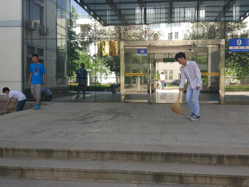 志愿者们以饱满的实践积极性投入到打扫中去,发挥不怕脏、不怕累精神,对于藏在草里难以清扫到纸张、塑料袋等垃圾,一一捡起来放进垃圾袋。随后,对9号楼前后的路面也进行了清扫。志愿者们拿着扫帚、抹布等工具,认真地拔除杂草,清扫垃圾,擦楼内的玻璃,个个干劲十足。志愿者们还将9号楼附近的自行车一一排列整齐,不怕辛苦,清理了隐藏在各个角落里的垃圾。志愿者们到活动区域捡拾垃圾、铲除杂草、清理杂物等活动,尤其是针对垃圾死角,采取地毯式清理,隐藏在内的垃圾被源源不断地清理出来,有效地改善了此区域的环境,志愿者们个个奋力争先,呈现出一片热火朝天的劳动景象。