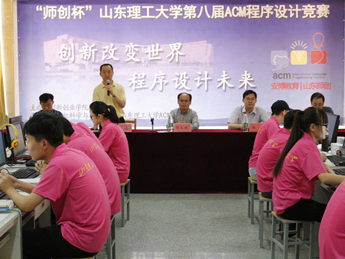 为提高大学生的程序设计能力,增强大学生在未来就业中的竞争力,5月29日下午,由我校创新创业学院主办,williamhill英国中文、ACM协会承办的“师创杯”WilliamHILL中国第八届ACM程序设计竞赛于信息楼8号、9号机房顺利举行。山东师创软件实训学院院长杨玉斌,我校团委书记、创新创业学院执行院长赵明,学生工作处副处长杨直,我院院长赵磊及学院党总支副书记刘东锋出席了此次活动开幕式。