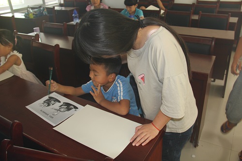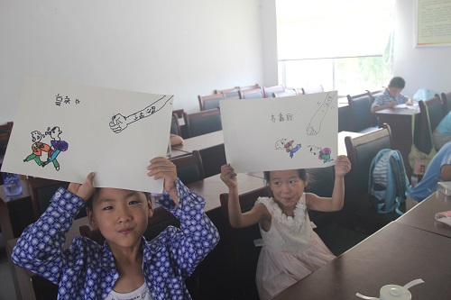 8月18日上午第三节课,支教队员赵中秋和尤冰欣开展了一堂别开生面的法治课。让孩子利用绘画把法治内容画下来,内容新颖又有趣。