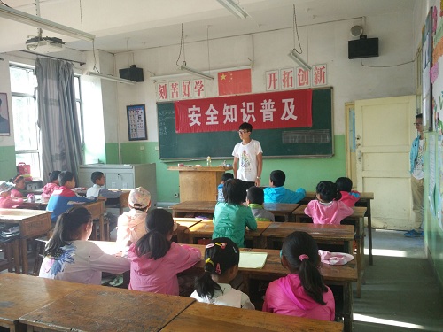 防震演练分为两个步骤:1、灾情应急报警疏散;2、消防知识学习普及;首先,由孙宝林老师为大家讲述了一节安全知识普及课,告诉学生地震发生的原因,并指导学生在发生地震时应如何做到自我保护,在老师讲解时,孩子们听讲认真,并积极于老师进行讨论,表现出自己所拥有的强烈的自我保护意识。上午9:00,随着一阵急促的警报声拉开了“师生安全疏散演练”的序幕。随后,在指导老师的带领下,各班同学用手捂住头部,弯着腰一个接一个井然有序的撤离教室,在楼梯各个拐角处,老师们督促孩子们忙而不乱的离开教学楼,活动按照预先的演习方案疏散学生,保证了学生的安全,避免应为慌乱中出现拥挤或者踩伤学生的现象。学生们逃生到操场时,排起了整齐的方阵,支教队队长李兆杰对全体学生做出讲话,鼓励学生努力学习灾难自救知识,提高自救能力,在灾难发生时能够最大程度的保障自己的人身安全。