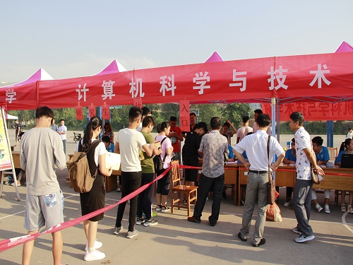 迎着清晨的第一缕阳光,伴随着阵阵清凉,学生会及社联成员便赶往第三体育场进行各项迎新的准备工作。随着太阳的升起,现场由开始的冷清逐渐热闹了起来。来核验手续的学生也慢慢多了起来。跟随着现场工作人员的指挥,现场并没有出现拥挤嘈杂的情况,同学们都自觉地排起了队伍,耐心的等待着。等待过程中,刘东锋及刘灿德主动与家长攀谈了起来,仔细询问学生的各项情况并向家长介绍我院的各项基本情况等。闲暇之余,家长们也对我院两边的展示牌产生了浓厚的兴趣,一起观看并探讨我院近年来在创新实验室、学生考研及学生工作等各个领域的发展情况,不时发出赞叹之声。随后,我校学生处各位领导前来莅临指导我院迎新工作,领导也就我院迎新工作给出了宝贵的意见与建议。