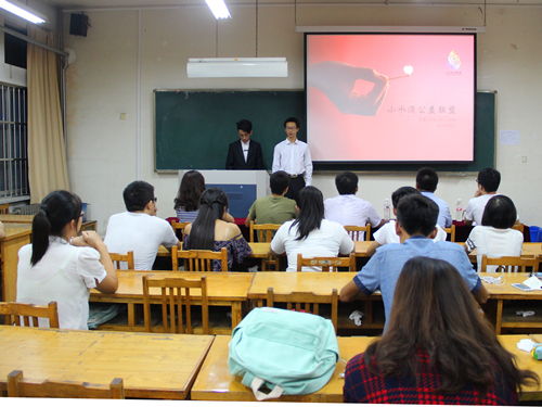 会议伊始,实践部部长张亚楠对各位评委的到来表示感谢,也对各支实践队顺利完成暑期实践表示祝贺。随后,各支实践队负责人依次上台,对各自实践团的人员构成、活动时间地点、活动主要内容、收获感悟、以及活动后期设想做了详细介绍。各负责人们富有感染力的讲解让在场的听众如身临实践现场,有人讲解澎湃激昂,有人深情感性,教室内不断响起阵阵掌声,同时结合精心制作的PPT,就如将社会实践从实践地迁移到了讲台。小水滴公益联盟实践团队与孩子们的相处令人感动,赴三井村实践团电商民情调查的新颖方法让大家向往。展示期间,各负责人与评委和同学们分享了在实践期间的一些趣事和当地的风土民情等,简短的话语中渗透出队员对实践中接触的人与事的不舍情谊。所有负责人演讲结束后,评委对实践队的暑期任务作了简单点评,对实践中的不足给出衷心建议,实践队员都欣然接受并表示感谢。