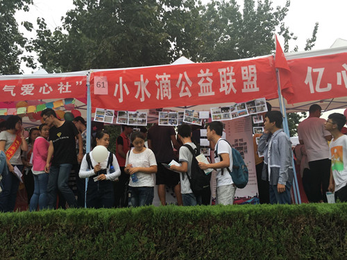 为响应校团委所举办的2016年社团集中宣传纳新活动,小水滴公益联盟于9月25日在我校大学生艺术广场举行了宣传纳新活动。小水滴公益联盟会长李兆杰携其社团骨干成员参加了此次活动。
