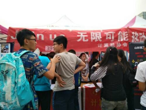 为响应学校号召,丰富大学生的业余生活。在学校与学院的支持下,9月25日,计算机协会与其他社团在大学生艺术广场进行了协会纳新活动并顺利进行。