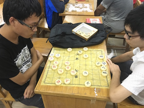 在简短的介绍之后,现场开始了热闹非凡的棋艺争霸,方寸纵横,尽情驰骋,棋盘上的手起手落、对手的步步紧逼都透露出生死的气息。棋盘上的每一步都展现出棋社成员的智慧与深思熟虑。在对招的几十个回合中,双方依旧未分胜负只好择日而战。