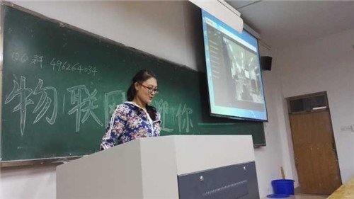 晚上7点前,协会各部门主要负责人已经准备就位,等待着新生的到来。同学们签到后陆续进入教室,找到座位后有序地就位。会议伊始,协会会长朱金如上台演讲,向大家介绍物联网协会这个大家庭。教室里非常安静,同学们都在认真地倾听。接下来由各个部门的部长来介绍部门的职能和作用,并诚挚地欢迎广大新生加入。