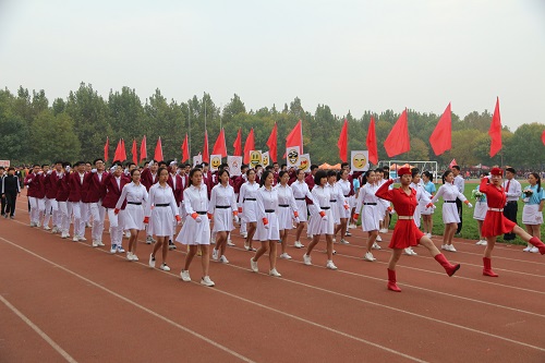 伴随着深秋的些许凉意,上午8时许,学校2016年运动会正式开幕。踏着铿锵有力的《运动员进行曲》,国旗护卫队、花束队及各学院运动员代表队依次经过主席台接受校领导的检阅。其中,男生身着红西装、女生身着白色连衣裙的学院代表队手拿光盘及富有青春活力的表情给现场观众以眼前一亮的感觉。在“互联网+”飞速发展的今天,学院始终保持活力,稳步前行。入场结束后,校领导发表讲话,鼓舞当代大学生积极参与健身运动,努力提高自身素质,做一个“德智体美劳”全面发展的理工人。运动员及裁判代表宣誓后,由各学院共760名大学生组成的健美操表演正式拉开了表演序幕。学生的每一个表演都展现着当代大学生朝气蓬勃的活力。精彩的表演赢得了现场观众接连不断的掌声。表演结束后,运动会正式开始,各项目随着裁判员的口令有条不紊的进行。