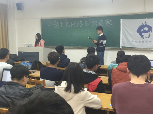 为了培养大学生的历史责任感和社会洞察力,通过一些有关社会热点、网络安全、网络舆论的相关问题来提高大学生对社会的关注度,吸引更多的学生关注网络的使用以及安全问题,网络爱好者协会于11月13日,在九号楼210教室举行一站到底网络知识竞赛。