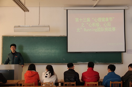 为了丰富学生学校生活,增进学生之间的团结意识,同时树立学生积极向上、健康阳光的心态,11月24日下午计算机科学与技术院在九号教学楼举行“心积极,心阳光”Running团队挑战赛。