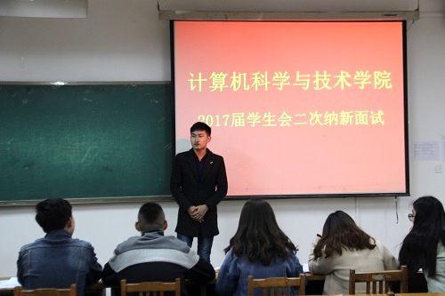 面试过程分为脱稿演讲和问题答辩两个环节。首先由各位竞选同学进行自我介绍,向大家展示自身优势、对所竞选部门的认知以及部门今后的简略规划和具体做法,并说明了加入学生会的初衷。自我介绍结束后,评委提出针对性问题,以此考察竞选者处理各类问题的能力以及是否具有该部门工作所需能力。竞选者以灵活独特的方式回答评委问题,简述自己的工作规划及工作职责,尽最大努力展示自己,以期望能够进入学生会队伍,锻炼自己,展现自己的才能,为同学们服务。各位评委本着公平、公正、公开的原则,以严肃认真的态度考量各位竞选同学,希望给各位竞选同学以施展自己才能的空间,做好每一项工作。