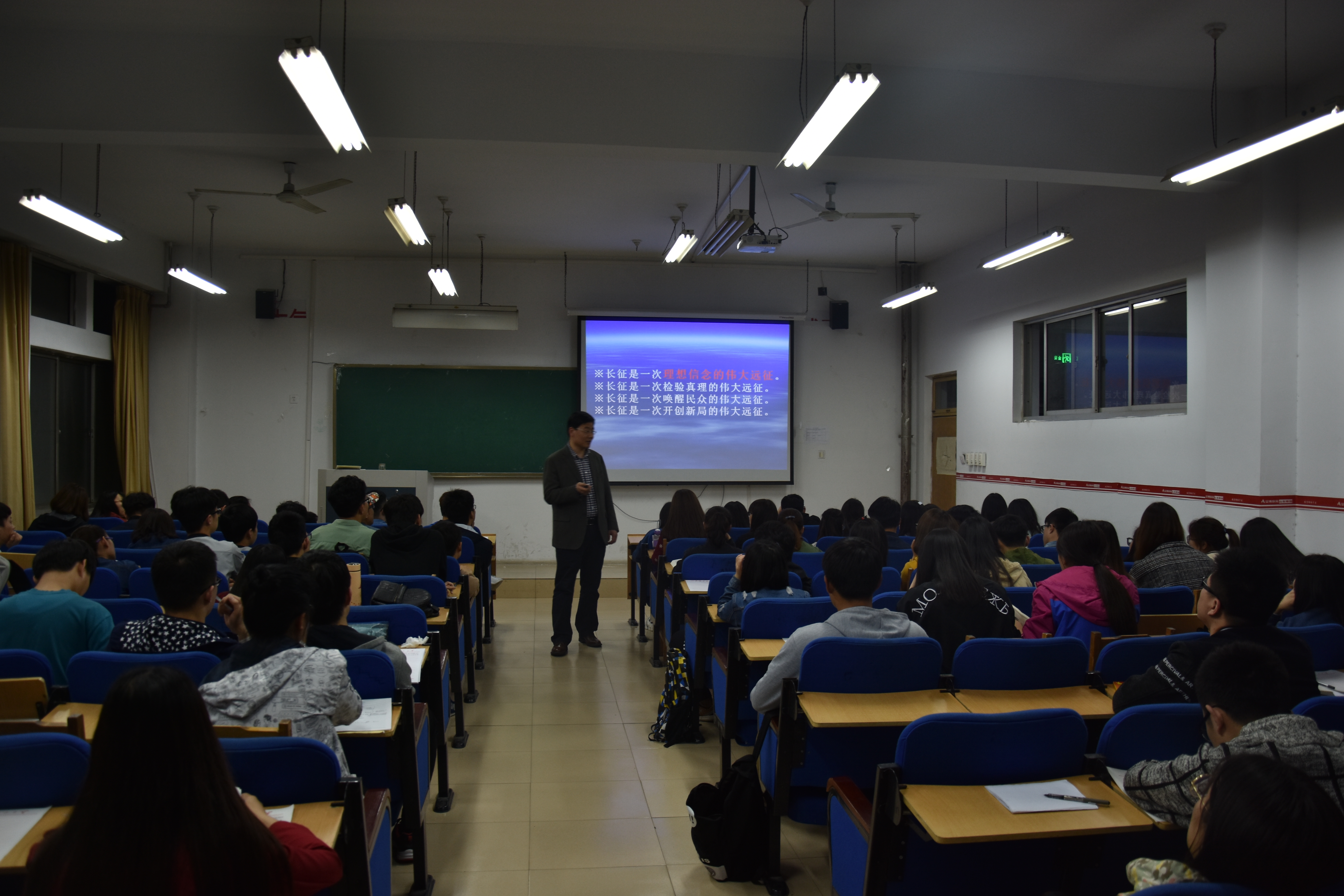 培训伊始,辅导员刘丛丛简要地对课堂笔记、考试要求、课堂纪律等做了要求。接着,在对课程专题划分进行一番介绍后,刘伟开始了专题讲解。他通过列举大量实例,“中国GDP排名”、“长征五号大火箭”、“一带一路”等,主要从经济建设及各方面,解答了走中国特色社会主义道路的必要性和优越性的问题。又通过对国共两党制度、宗旨、结果的对比,再一次进行了补充和强调。同时,简要地介绍共产党、中国特色社会主义的发展史及“十八大”,强调了“中国特色社会主义要坚持中国共产党的领导”。他还通过长征、革命烈士事例等,重点对理想、信念问题展开阐述,使同学们进一步认识到了中国特色社会主义探索的不易。最后他对中国特色社会主义的道路、理论体系、制度、文化四个当面进行总结。