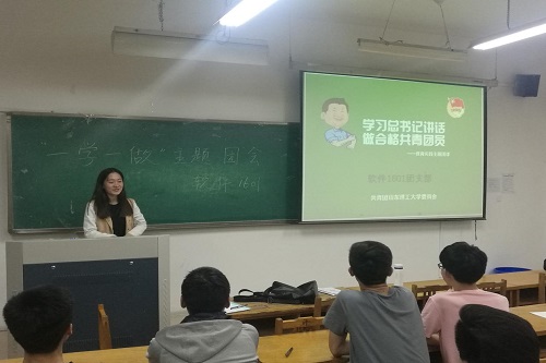 为了深入学习习近平总书记系列重要讲话精神,加强团员对共青团的认识,树立良好的班风集体的光荣感和使命感。4月24日晚,williamhill英国中文软件1601团支部全体团员在9号楼208开展了“一学一做”主题班会,团支部书记石运娴担任主讲人。