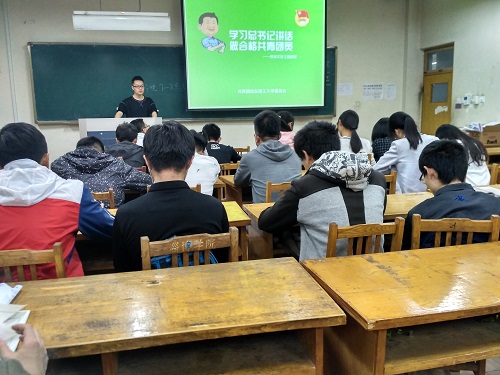 为响应学院近期开展的“一学一做”教育实践活动,深入学习习近平总书记系列重要讲话精神,提高团支部成员思想觉悟水平。计科1601团支部于4月24日晚在九号教学楼107开展了“学习总书记讲话,做合格共青团员”主题团课。同学悉数到场,认真对待此次主题团课。