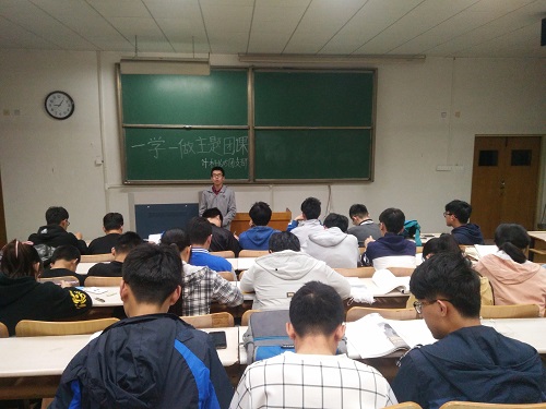 会议伊始,徐红博向大家介绍了此次团课举办的目的以及“一学一做”活动的实际意义,就是为了让同学们深刻领会总书记的讲话精神,以及对照习总书记提出的要求,严格要求自己以成为一名合格的共青团员。他希望同学们能够借此机会更加了解习总书记的讲话精神。随后,入党积极分子的候选人李赫等同学向大家朗读了习总书记2014年在北京大学师生座谈会上关于青年要自觉践行社会主义核心价值观的讲话以及2013年在五四青年节同各界优秀青年代表座谈时的讲话。最后,优秀团员代表陈海星同学向大家交流了此次主题团课的感想,同学们听之之后感触颇深。