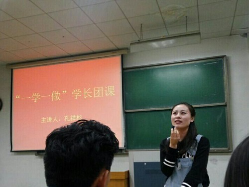 为积极响应团中央号召,切实开展“一学一做”教育实践,4月25日通信1602全班学生在第九号教学楼210举办了以“一学一做”为主题的团课。此次团课孔祥杉学姐主讲,全班所有团员均参与到团课的学习中,会场气氛十分活跃。