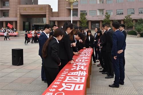 活动伊始,由学生会人员带领各个班级到达指定区域,自由组织“一学一做”团日活动。各团支部同学精神饱满,在领誓人的带领下,同学们在团旗下庄严地宣誓,声音铿锵有力,用自己的一言一行践行着自己的入团誓词。在慷慨激昂的宣誓后,各团支部同学依次在条幅上签上了自己的名字,表示了自己会在新时代的今天要做一名合格的共青团员的决心。各团支部由学生代表发表演讲,呼吁同学们勇于承担责任,认真严谨,奋发图强,忠于党,为国家现代化的建设贡献自己的力量。有的团支部齐唱《共青团团歌》,彰显了班级团结一致的氛围和当代大学生积极向上的精神风貌。阵阵洪亮的歌声,铿锵有力的誓言,“厚德,博学,笃行,至善”的校训在鸿远楼前体现的淋漓尽致。随着各班在鸿远楼前合影留念,此次团日活动也落下了帷幕。