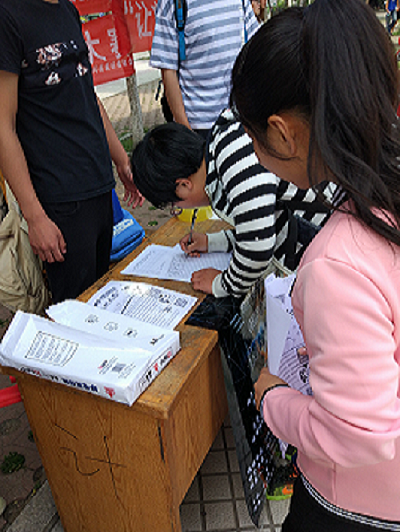 活动开始前,王全喜和协会骨干成员积极为宣传活动做好准备,早早地来到目的地布置好桌椅、整理好宣传海报等。场所布置好之后,巨大的横幅、鲜艳的海报立即吸引了众多同学们的注意。负责此次活动的协会骨干热情的为参赛同学们讲解报名方式、参赛作品的要求和参赛的其他注意事项。为保证此次活动参赛成绩的公平性与合理性,网络爱好者协会将同学们的作品发布到微信公众号上,进行为期三天的投票,并根据微信投票的40%总名次,现场答辩的40%,以及评委打分的20%,来决定所得的决赛总成绩,最终胜出的同学将会获得校级证书以及精美的礼品。