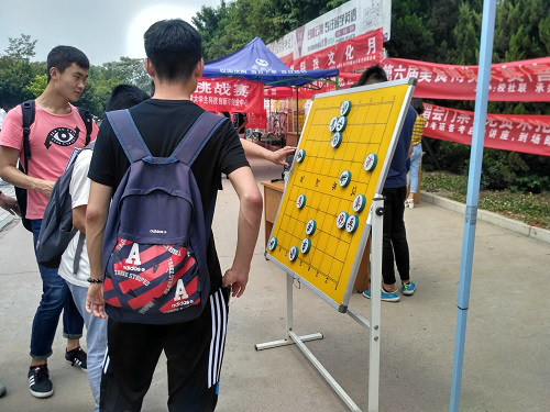 此次周末校园文化广场活动是由我校安弈棋社,桥牌社,仙弈围棋联合举办,旨在推广棋牌类运动和给广大喜爱棋牌类运动的同学一个竞技交友的机会。棋牌类运动起源非常早,在古代,人们就把“弈”作为六艺之一,现代社会,各种各样的新式棋牌类运动也逐渐兴起,象棋,国际象棋,围棋这种传统棋类运动仍然广受欢迎,桥牌在国际上也被其他国家的人民群众认可。此次活动,主要设立象棋,国际象棋,围棋,五子棋和桥牌五个大项。此次宣传活动过程中,同学们报名热情很高,很多同学在餐厅门口的宣传展位前驻足,分析棋盘上的残局,展开了激烈的讨论。