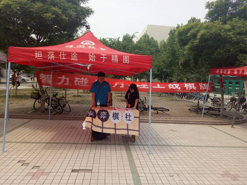 5月10日中午,为了宣传即将到来的周末校园文化广场活动,加深同学们对棋牌类运动的了解,我院安弈棋社在第二,第三,第四餐厅举行宣传活动。棋社成员积极参加,宣传活动有条不紊的开展。