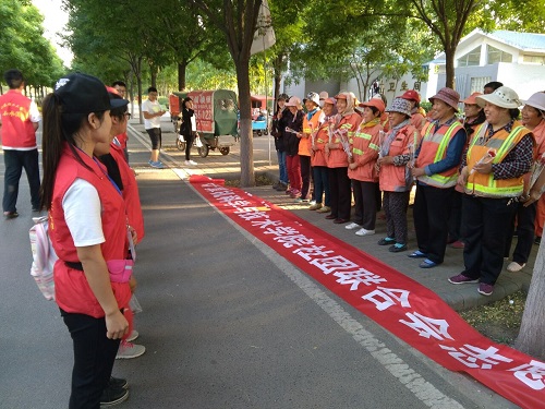 赠人玫瑰,手有余香。奉献爱心,收获希望。为了给环卫女工献上一份母亲节特殊的礼物,也为了培养学生们的志愿服务精神。5月14日母亲节上午,我院社团联合会与小水滴公益联盟共同举办的“让环卫妈妈休息一天”活动拉开帷幕。活动的主要内容是帮助环卫女工打扫卫生,体验劳动生活。时间则以环卫女工的工作作息表为参照,参加活动的有40余人,每1~2人帮助一名环卫女工。