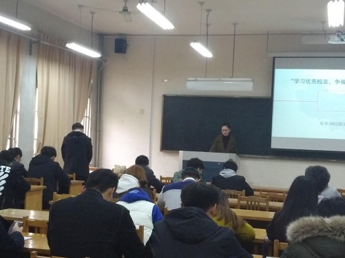 在软件1602团支部团支书的主持下,主题团日活动展开。首先由团支书向大家介绍主题团日活动的主要内容,并向和大家共同回忆了我校的优秀的校友。