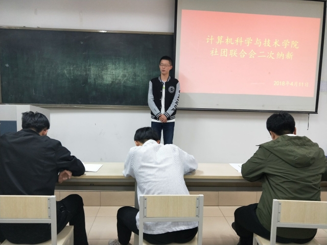 随着时间的流逝,社团联合会二次纳新活动也逐渐地拉开了帷幕,各位同学也开始按照签到的顺序逐渐的上台,他们尽量的用三分钟在台上去演讲同时也尽量的展现自己的优点,尽量给各位部长留下深刻的印象。在接下来的问答环节中主席和各位部长提问了一些关于同学对社团联合会和对本部门的了解,以及以后的发展意向。通过此次纳新可以看出每位同学的悉心准备。