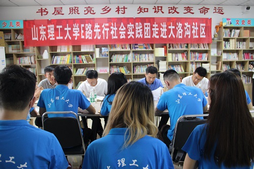 7月19日下午,在经过一日多的熟悉后,实践团成员已经逐渐熟悉了大洛沟社区的整体布局,于下午参观社区的城市书屋并开始整理社区的相关资料及撰写调查问卷等。首先,实践队队员先对了解到的实际情况进行了完善,在经过实践团全体成员的共同讨论后,最终确定了将实践团分为调研、拍摄、技术支持等多个小组,同步开展多项实践活动。接下来,实践团针对讨论出的结果及参考现有资料开始拟定线上调查问卷。调查问卷由“互联网+农业”、“社区居民生活状况”、“社区居民对物流的认识”三部分组成,将发给部分居民代表进行填写。在完成准备工作后,实践队成员来到了当地的城市书屋。书屋内涵盖了历史文献、著名小说、四大名著、经典著作等种类繁多的书籍。书房内十分安静,且有许多小学、初中、高中等各年级学生在此读书学习。书屋值班人员还为实践队成员详细介绍了借阅书籍的具体步骤,带领实践队员们在书屋内进行参观。