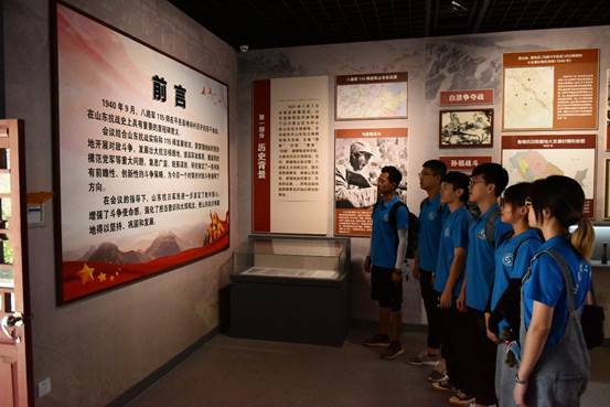 在“山东省爱国主义教育基地”八路军115师沂蒙纪念馆,实践团见证了八路军115师在沂蒙度过的峥嵘岁月,了解了沂蒙军民联合抗日的光辉历程。风起尘扬、硝烟弥漫的时代,抗战并非纸上谈兵,抗战胜利的丰功伟绩来之不易,军民并肩奋战、所向披靡才收获了今日的和平与稳定。