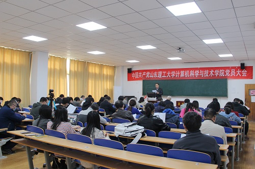 换届选举大会在庄严的国歌声中拉开帷幕。会议伊始,学院党总支书记田兆富代表上届委员会作工作报告。报告回顾总结学院党总支工作开展情况及取得的成绩,认真分析学院发展面临的新形势和新任务,指出工作中存在的不足并对新一届党总支委员会提出工作建议,为今后工作的良好开展指明方向,号召全院党员和师生员工不忘初心,继续前进,攻坚克难,锐意进取,为建成有特色、高水平的计算机学院而努力奋斗。全体党员经过认真讨论、审议,一致通过田兆富所作工作报告。