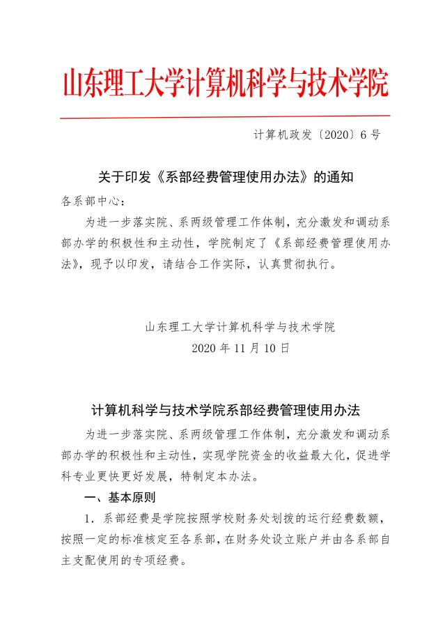 关于印发《系部经费管理使用办法》的通知