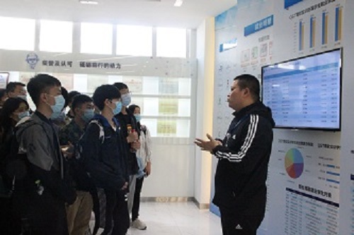 参观伊始,由企业基地老师带领同学们参观青软集团总部基地展厅,通过对展厅内容的讲解,帮助同学们更好地了解青软集团文化、发展史、业务生态体系、产教融合定位和价值、学生就业情况等。基地老师在介绍产教融合中重点阐述“以产业和用人需求、技术发展为导向”的思想,通过对企业和高校的核心定位实施教学培养计划,不断提高人才培养的质量,体现实训教育的价值体系。