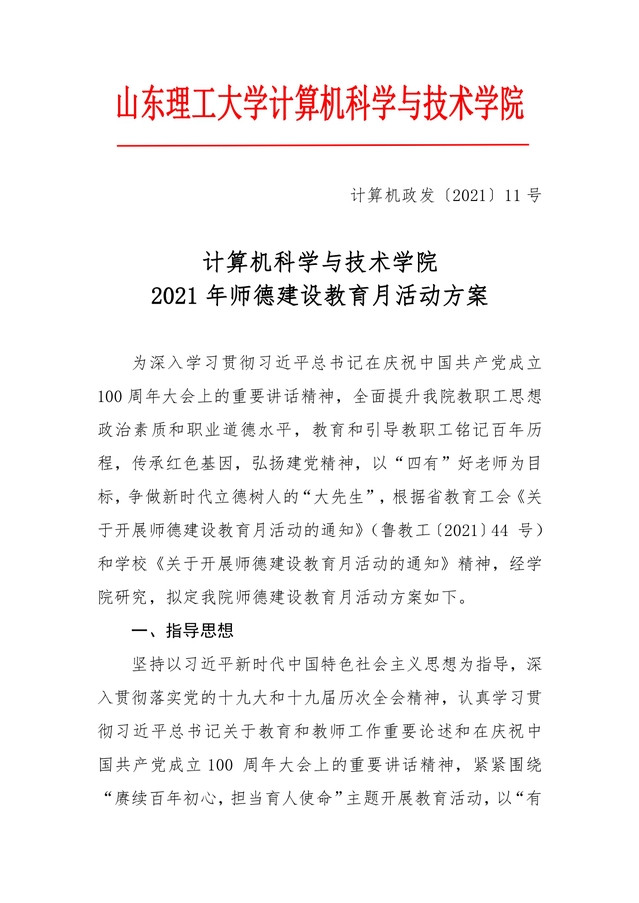 计算机政发【2021】11号 关于师德建设教育月活动方案
