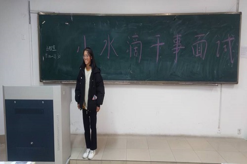 为完善社团内部结构,便于开展各项工作,小水滴公益联盟特举办此次纳新活动。活动开始前,有意参与竞选的同学在规定时间内将自荐表交于指定地点。活动伊始,参与竞选的同学陆续到达教室,并签到入座。随后,社团工作人员上台介绍此次竞选的目的、竞选方式,并对同学们的到来表示欢迎。面试开始,同学们按照签到的先后顺序依次上台演讲,演讲内容包括个人基本情况、工作经历、对社团的认识、任职优势、工作设想等。演讲完毕后,台下的评审小组根据同学们的演讲以及自荐表上的内容针对性地提出一些问题,同学们在经过仔细严密的思考后也给出了自己的见解。随着时间的流逝,活动接近尾声。
