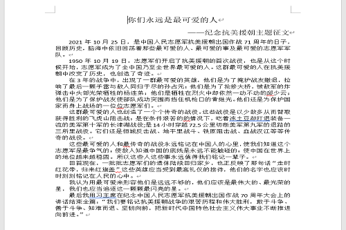 此次征文活动丰富了同学们的课余生活,培养了文学青年,强化了同学们的特长,抗美援朝精神为当代大学生树立了正确的价值观、人生观、世界观。弘扬了积极向上、努力奋斗的精神,提高了自身涵养,让同学们牢记抗美援朝精神,致敬人民英雄。同时加强了学风建设,对学校五有人才的培养具有积极意义。