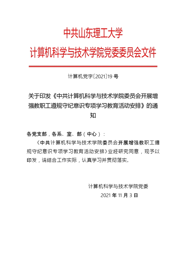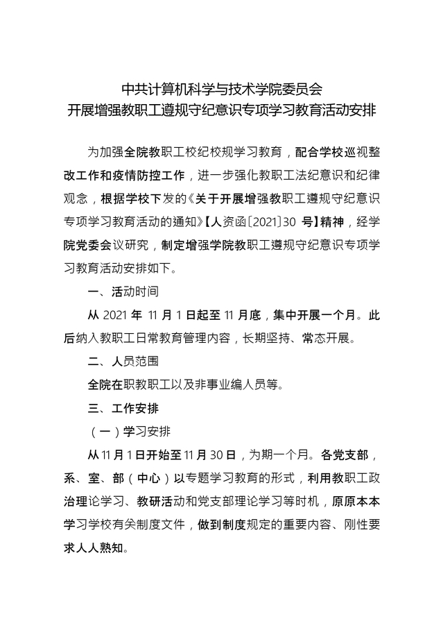 计算机党字【2021】19号-williamhill英国中文党委开展增强教职工遵规守纪意识专项学习教育活动安排