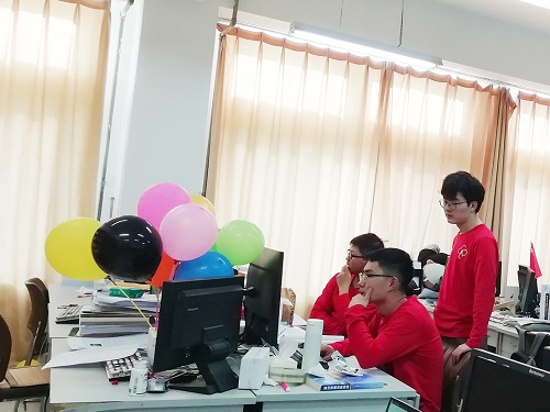 在比赛预备阶段,为确保比赛的公平公正,考场负责人员向考场参赛同学宣布比赛的注意事项和要求,并统一向参赛选手发放草稿纸以供参赛选手演算算法。此次竞赛采用三人组队的形式,竞赛共进行5个小时,竞赛题目共13道,由同队的三名选手使用同一台计算机协作完成。当解决了一道试题之后,将其提交给评测机,由评测机判断其是否正确。若提交的程序运行不正确,则该程序将被退回给参赛队,参赛队可以进行修改后再一次提交该问题。每通过一个题目升一个对应颜色的气球。考场内安排专门的志愿者对比赛现场进行实施监控,维护比赛现场的秩序,以确保比赛的公平公正。比赛过程中,每一个团队的成员都在积极讨论,赛场上讨论声音和鼠标及键盘按动的声音交杂在一起,比赛氛围紧张活跃。比赛结束后,评测系统自动对比赛进行评判和排名,随后由比赛的负责人进行揭榜。