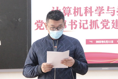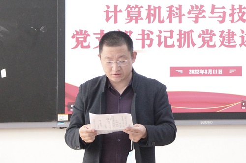 软件工程专业教工党支部书记祝铭:坚持以党的政治建设为主要抓手,把制度建设贯穿到支部的日常建设发展过程中去,找准目标,向目标看齐,向先进学习。提升党支部的组织能力和政治功能,发挥共产党员的模范先锋作用,为学院建设国内知名、省内一流的计算机学科,为软件工程专业建设省一流专业提供了坚强的政治保证、思想保证和组织保证。