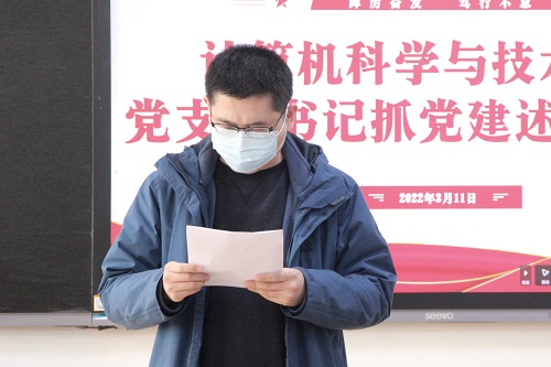 计算机科学与技术系学生第一党支部书记王超:扎实开展党史学习教育,有序推进党支部建设,不断提升党建工作的质量水平,引导党员干部增强“四个意识”、坚定“四个自信”、做到“两个维护”,同时继续加强理论学习,提升支部成员综合素质,进一步发挥党员的先锋模范作用,争做学院标杆党支部。