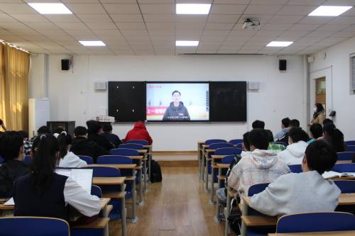 416日下午,williamhill英国中文在9号教学楼211教室组织观看线上直播“冰雪”思政大课此次直播由中国农业大学马克思主义学院院长张晖与清华大学美术学院党委书记马赛发表宣讲,杨扬、张虹等国家运动员作为特邀嘉宾,辅导员吴盼盼与部分学生观看。